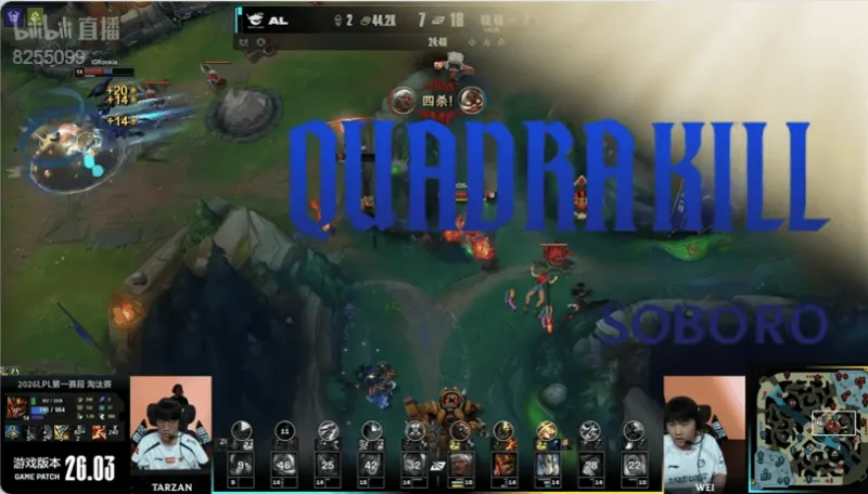 24分钟:Shanks岩雀被Rookie蹲到,Soboro狼母豪取四杀团灭AL